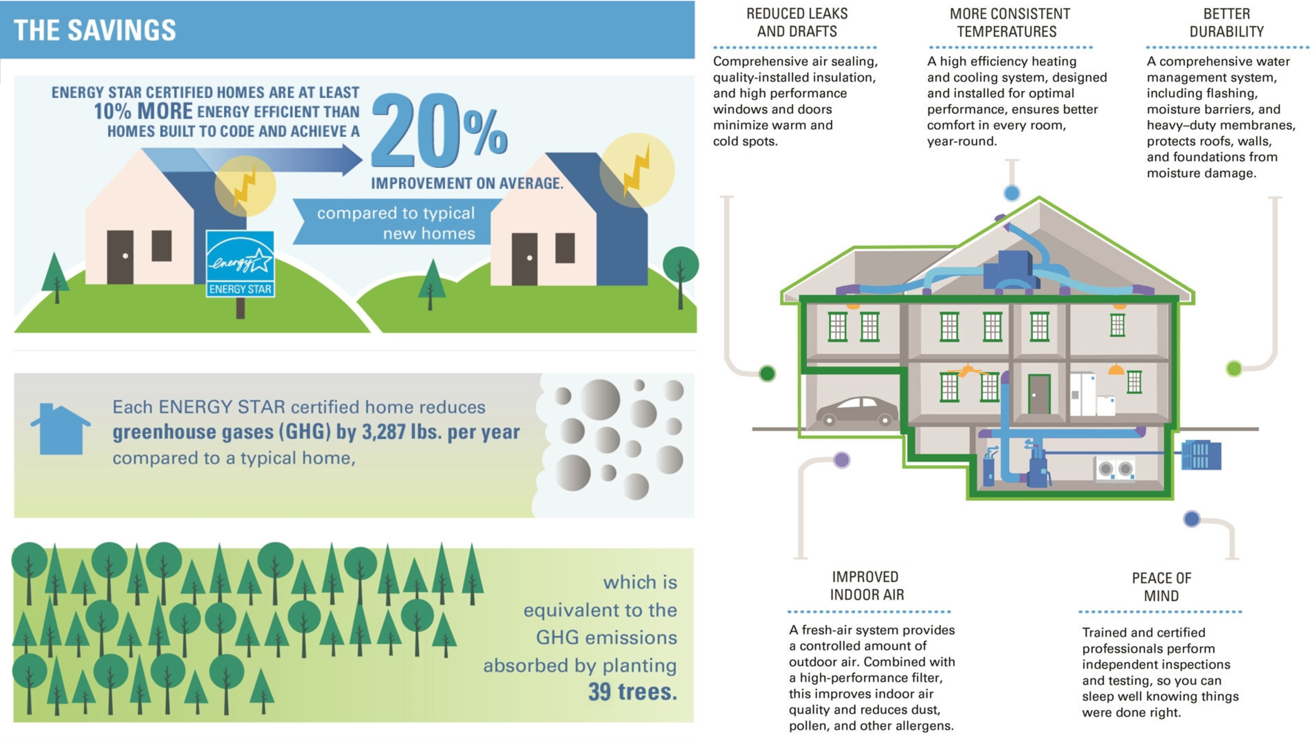 Homes and apartments earning the ENERGY STAR label offer better energy efficiency and performance compared to other homes, making them a better value for today and a better investment for tomorrow. ENERGY STAR certified homes and apartments are at least 10% more energy efficient than homes built to code and achieve a 20% improvement on average.